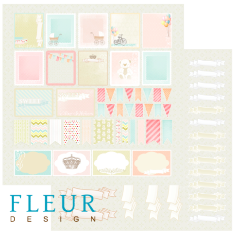 Лист бумаги для скрапбукинга "Карточки", коллекция "Детская", 30 на 30, плотность 190 гр